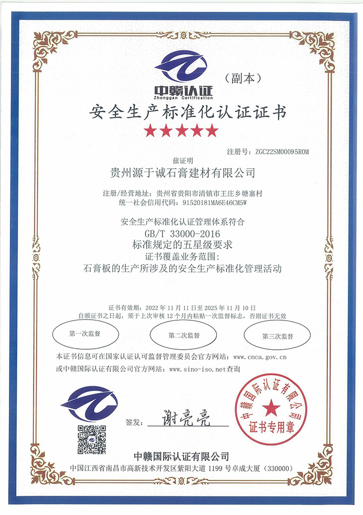 安全生產(chǎn)標(biāo)準(zhǔn)化認(rèn)證證書